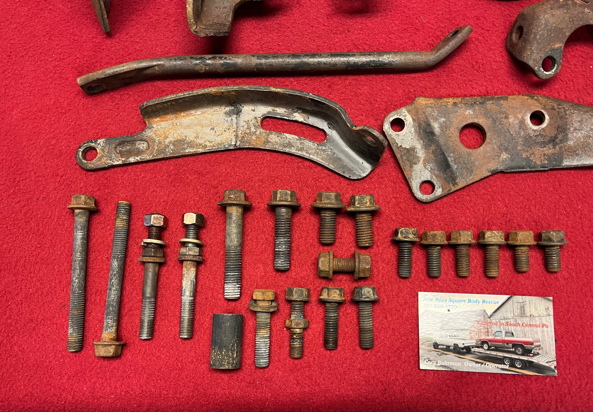 Air Conditioning (AC) Compressor Mount Bracket and Hardware Kit R-4 Pancake Style 1981 - 1984. This kit will come with eight mounting brackets used for the AC compressor and the hardware needed to mount it. This is for use on the drivers side mounted compressors used with the long water pump. Compressor is not included. These brackets will fit many years and models other than just Square Body. Everything is used, but in very good condition. The items that are pictured will be the items that will be shipped. Only items pictured are items being sent. Pictures of the assembly is just for assembly references and not the product that will be shipped