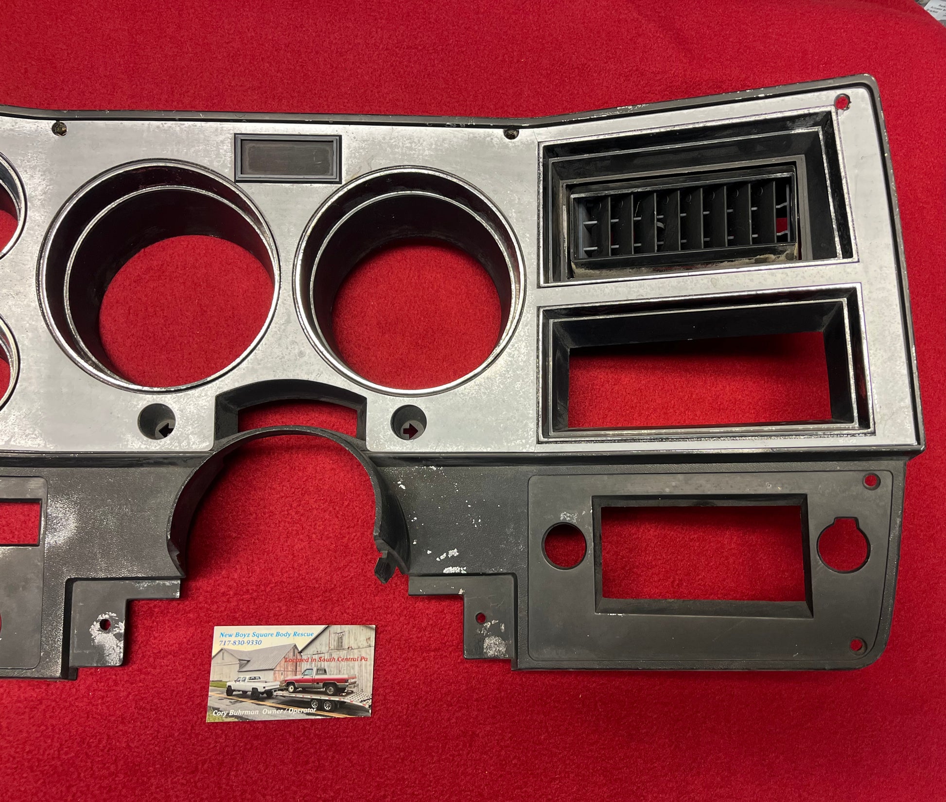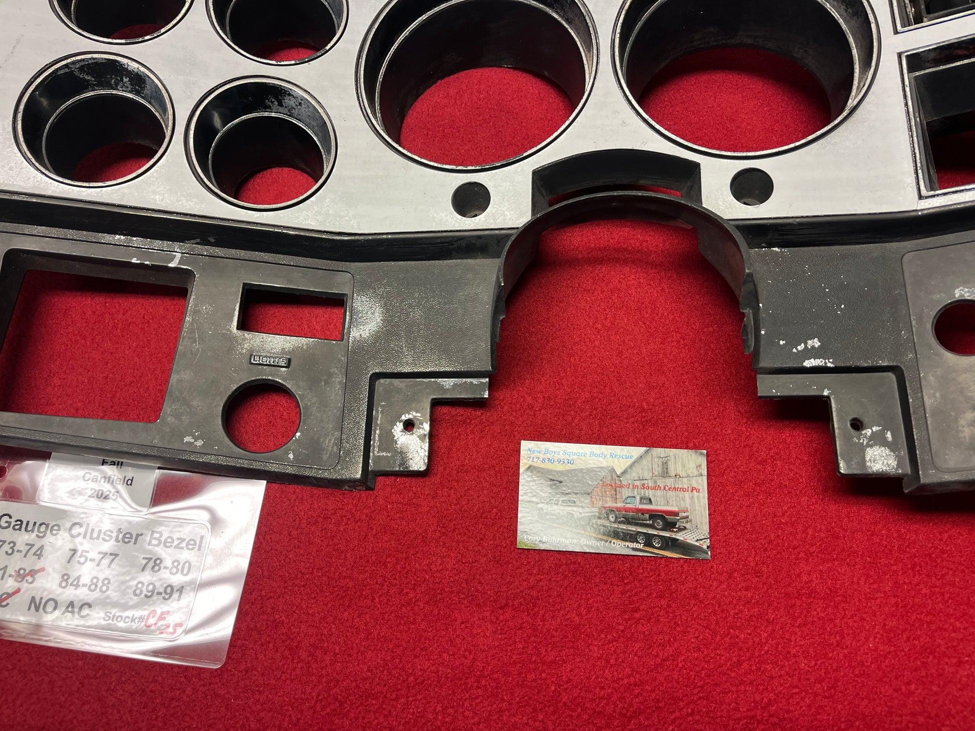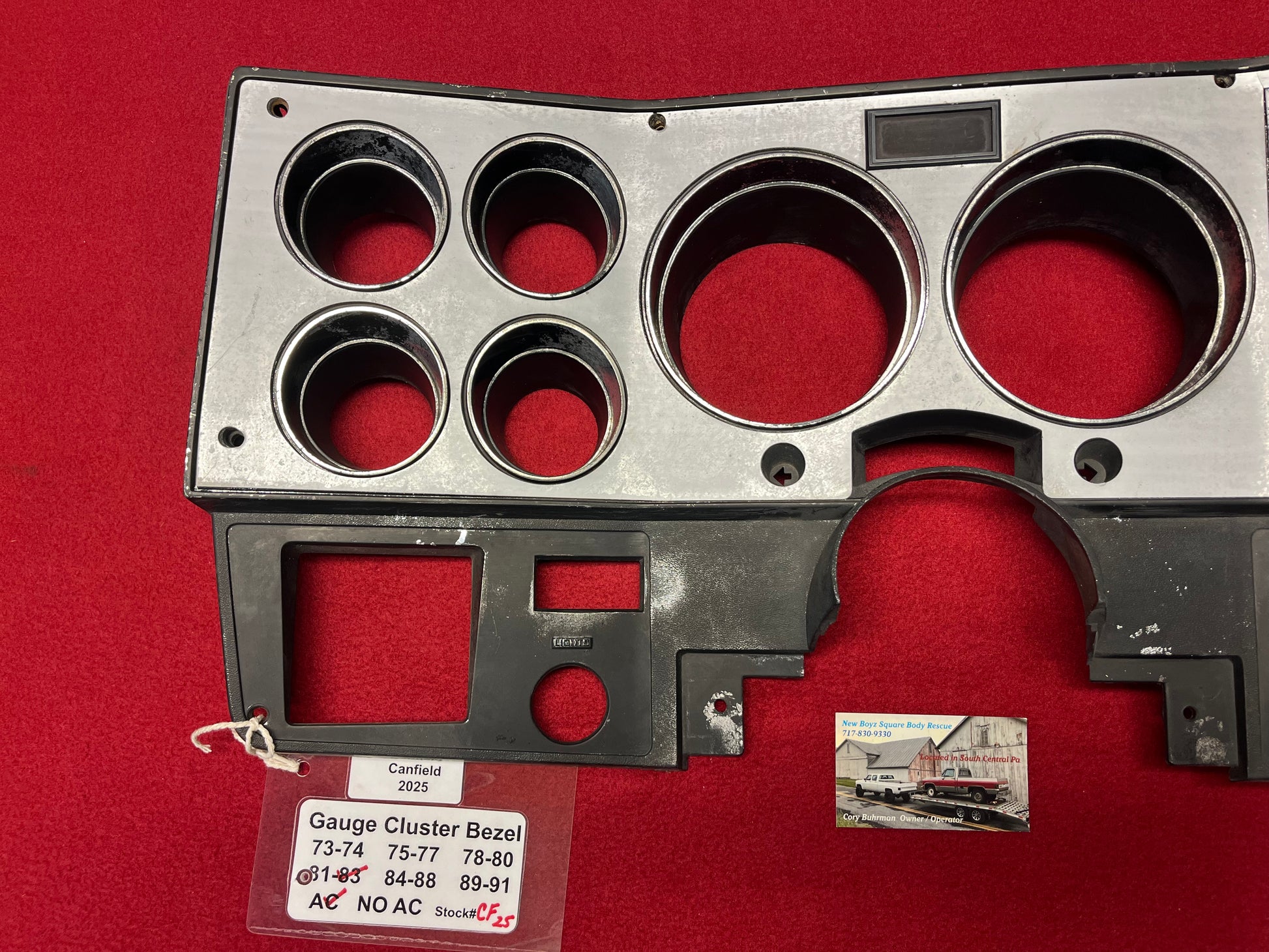 Bezel, Gauge Bezel 1981 - 1983 With A/C With Indicator Light Diesel (Instrument Bezel) Part# 14023006. This is a used gauge / instrument bezel used from 1981 through 1983. This will have the wipers on the dash. This particular one does have the accent which is in fair condition. The bezel that is pictured is equipped to be used with air-conditioning. There is a few cosmetic flaws that will not hinder its performance or functionality. All issues are shown in the pictures. This is a non-returnable part. Please verify prior to purchasing. This will fit your vehicle. We will not return it due to misapplication on customers end.