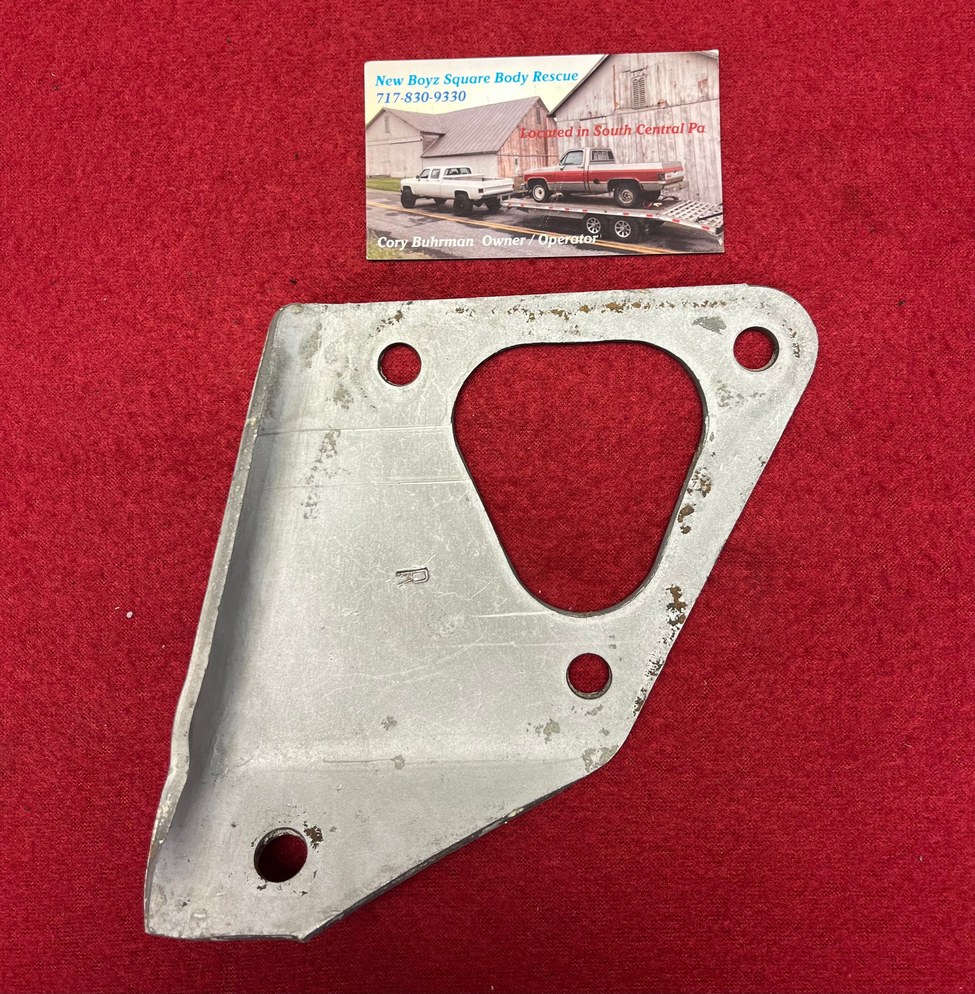 Bracket, Transmission Brace Bracket RH Small Block Part# 15529888. This is the bracket that would go between the engine mount and the engine block that would hold the support brace for the transmission on K Series. This is a used item in very good condition. This may fit other models and engine sizes, I cannot verify.