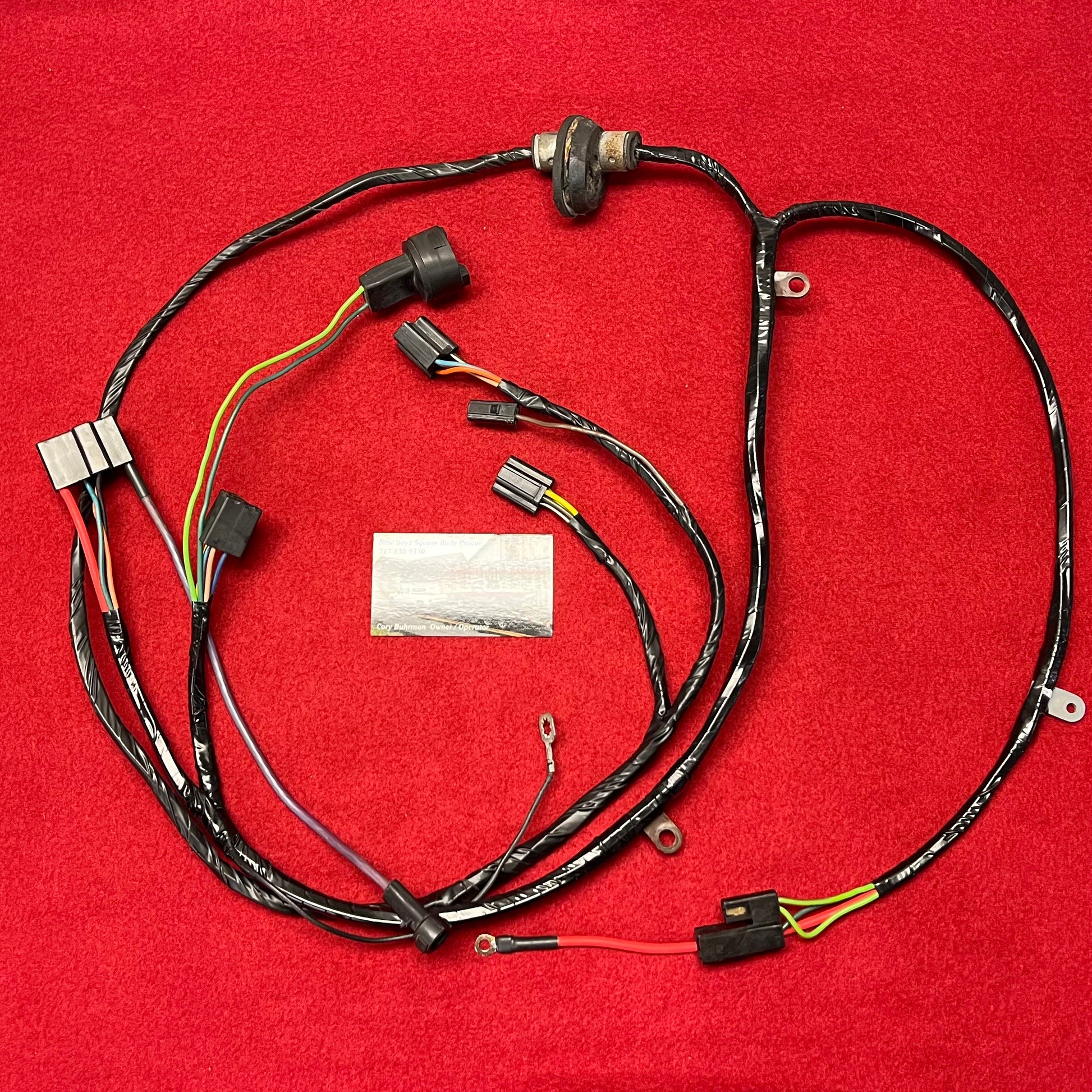 This is a reconditioned harness done by us @ New Boyz Square Body Rescue. Being this is a used harness that’s been reconditioned there might be slight fading on the wire or connectors. On some exterior harnesses you might see residue from firewall sealant or undercoating. This will be removed as much as possible. With our reconditioning harnesses, we soak them in a cleaner, then we clean all connectors and terminals. After the harness is cleaned, we inspect for any damages and repair as needed at factory connections or splices. We then reinstall the loom or tape as needed. This is not a new item, but will work just as well as a manufactured harness by the large box stores.