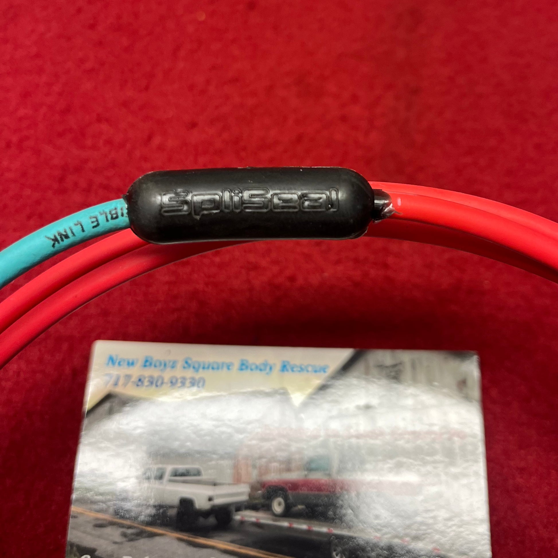 Lead M, Power Point Lead Junction Post - Starter Main Post 55” (New Manufactured). This Lead will go from the Junction Block Big Post on Firewall to the large post on the starter solenoid. This part is completely manufactured with new products. These are manufactured off of a template of a factory harness. The length of the leads and the wire are identical to the factory harness with no modifications. This is basically a plug and play fix if you have a bad harness section. This is the single red 12 Gauge wire to feed the junction block that has the main fuse link wire from starter.