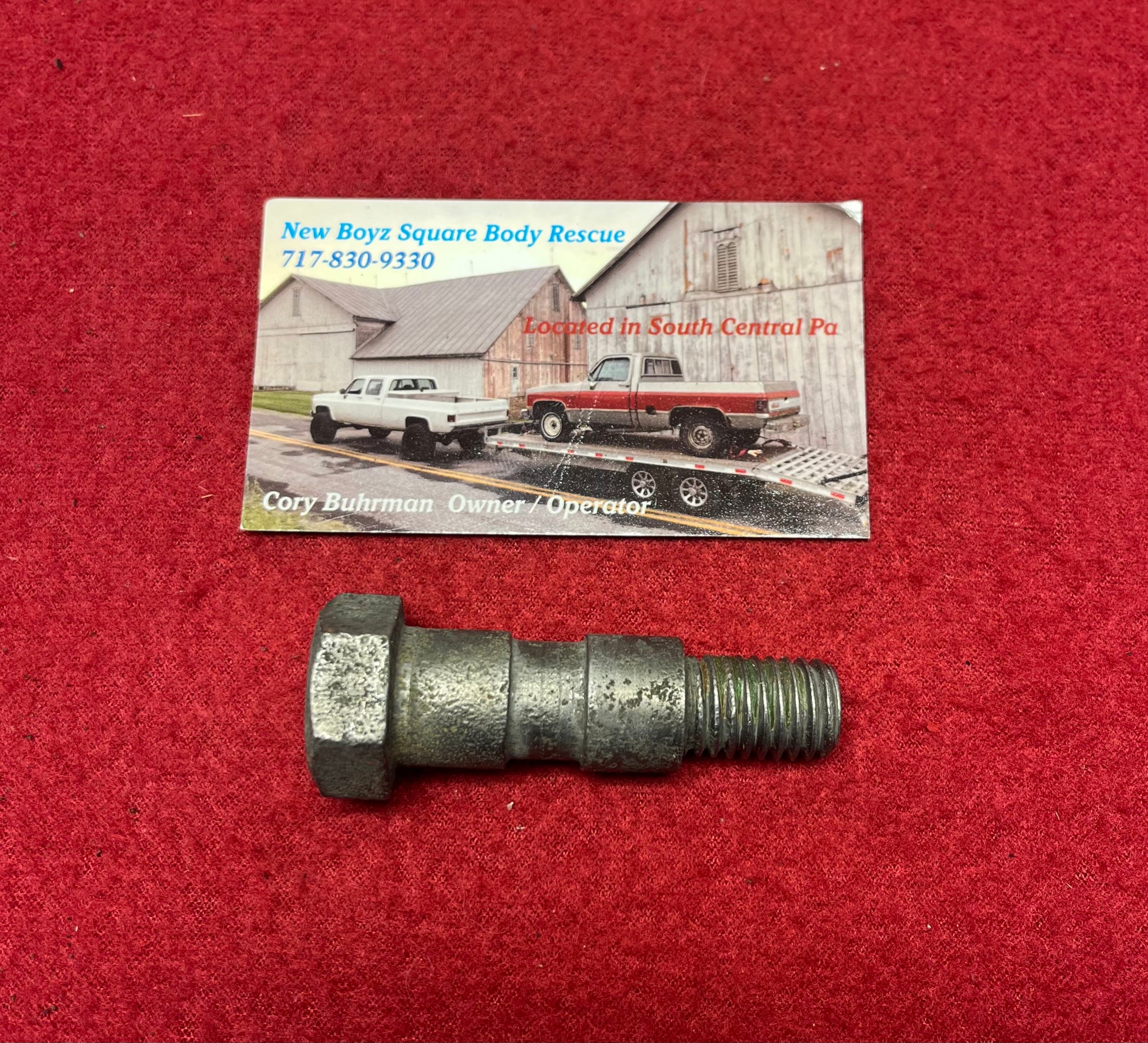This is the bolt that attaches the shifter lever to the center section. This bolt has been chemically cleaned of all grease & rust. These are used OEM items. Bolt has a few small cosmetic flaws.