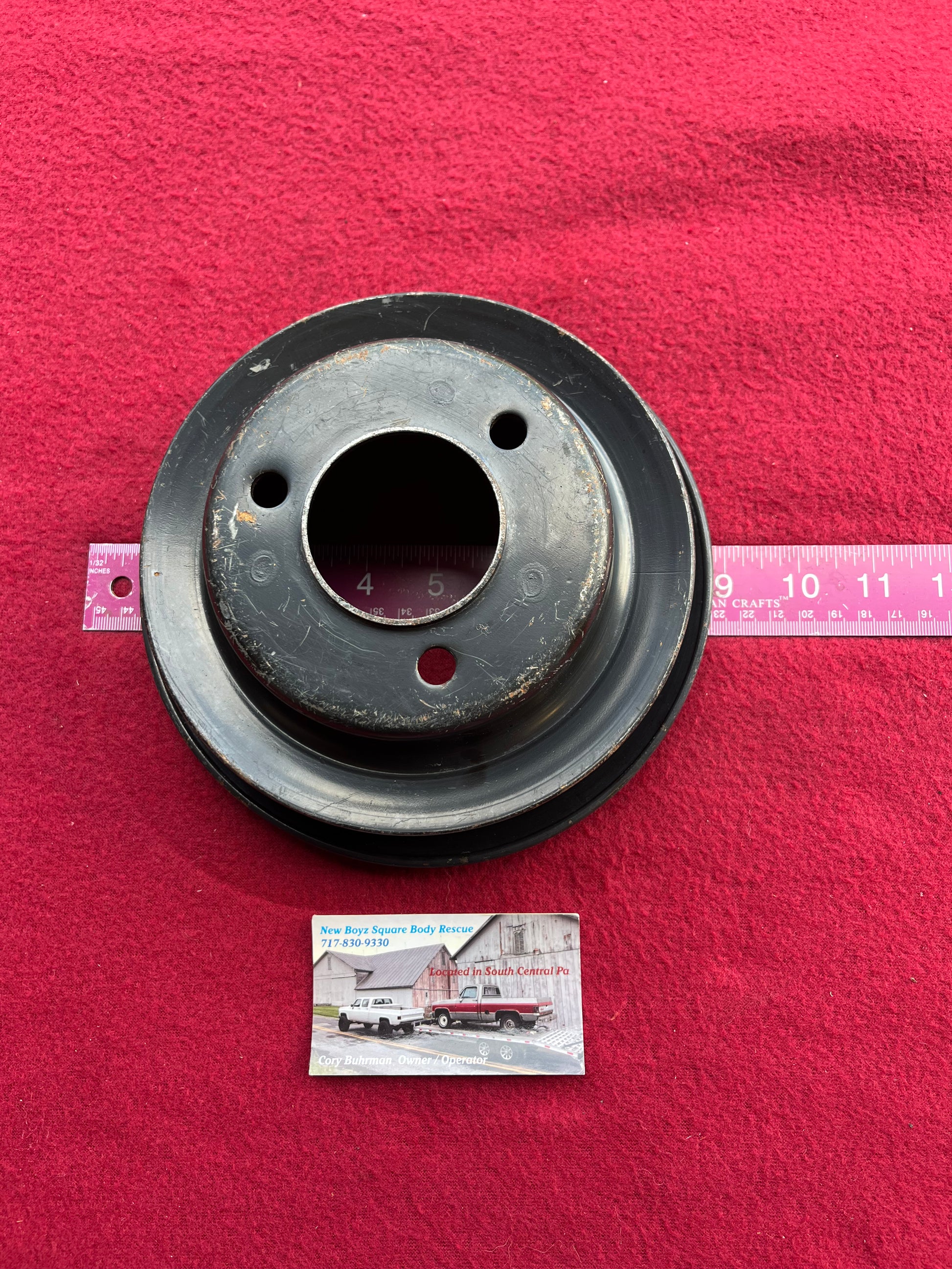 Pulley, Big Block Chevy Crank 3 Groove Crank Pulley Part# 14025185. This is a used pulley that is in very good condition. All grooves have little to nowhere. Almost looks like a NOS piece.