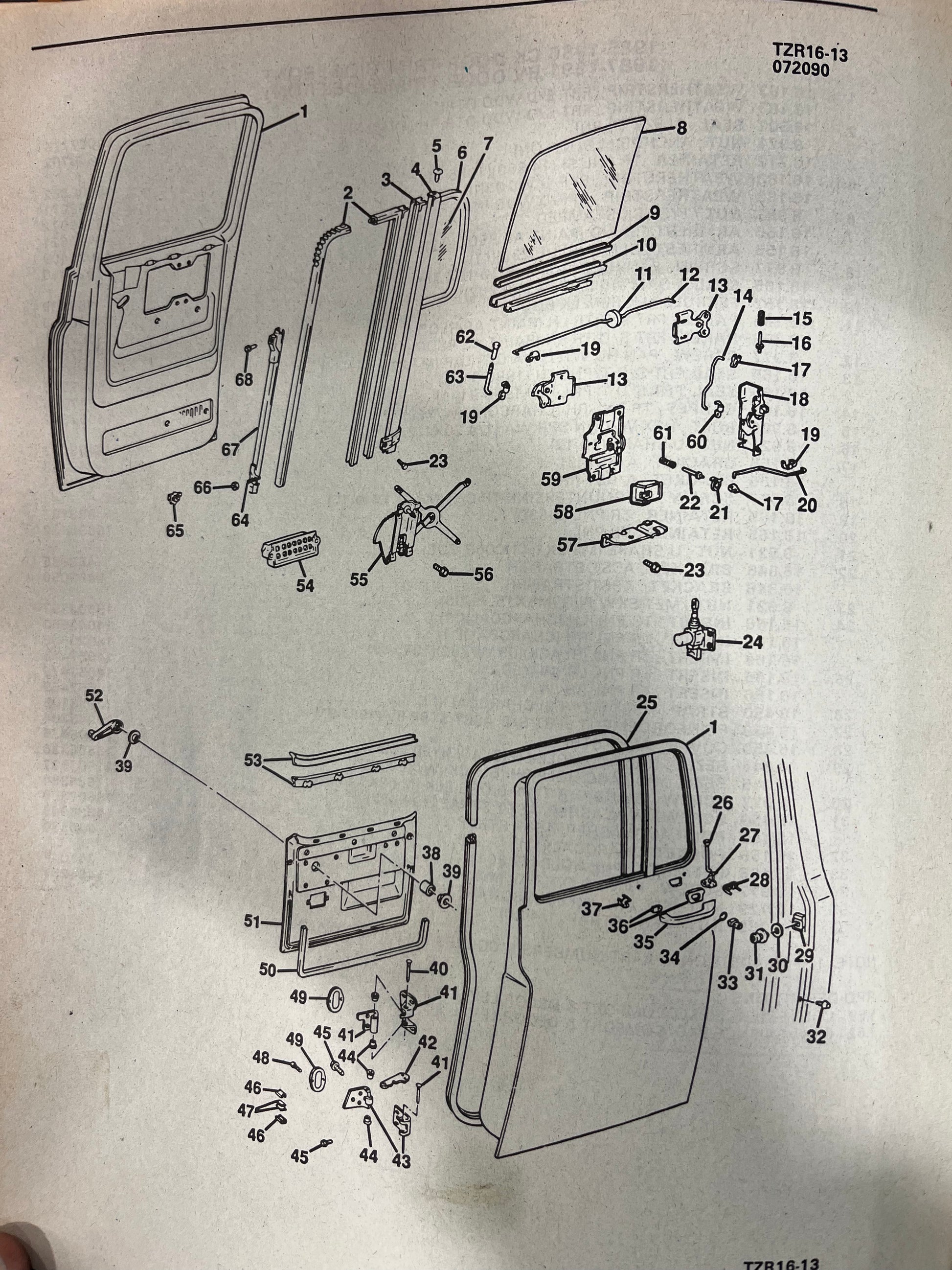 Lever, Rear Side Door Lock Pull Rod Pivot Individual Part# 14039775. This is the pivot assembly that holds the small rod used to attach the pull knob for your door locks and the main transition rod on a 4 door. This is sold individually. It does take two per door. We do offer assemblies on website also. Pivot sent might not be item shipped. Will be in same condition. Pivot will come with rod attachment clips. Part# 14039775