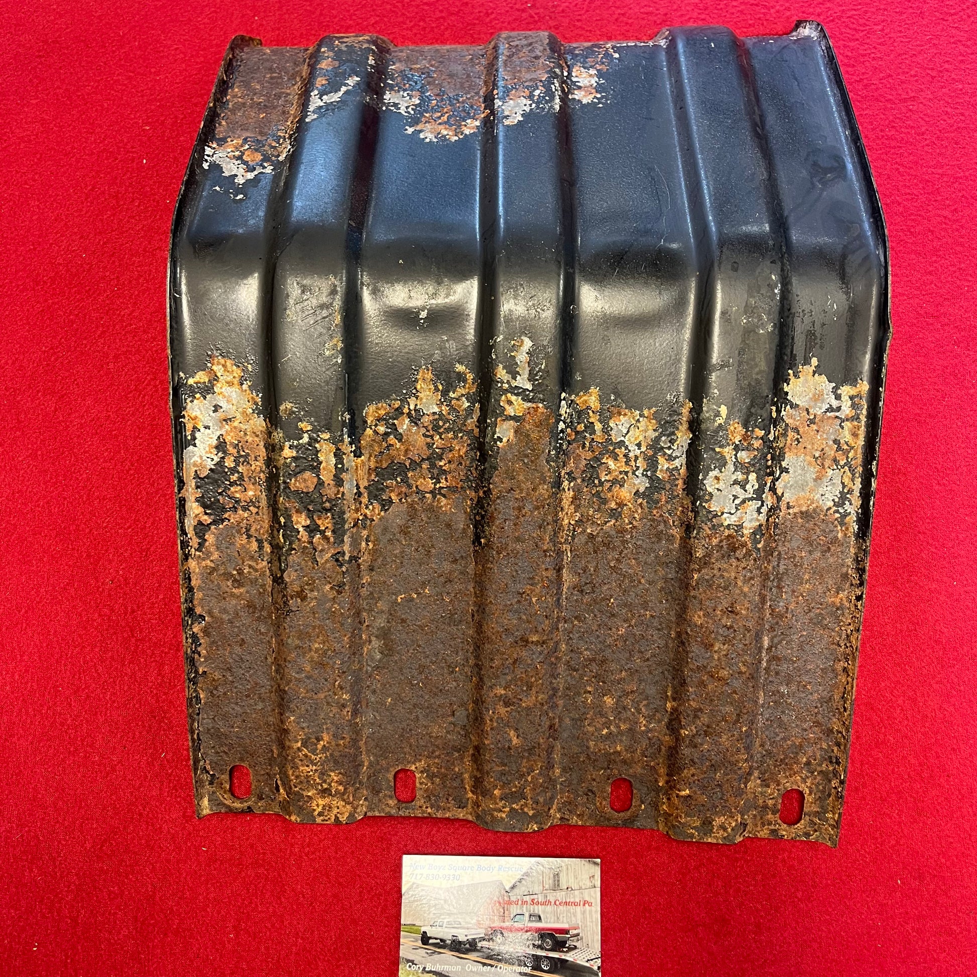 Shield, Muffler Heat Reflective Shield K5 (16) Part# 471089. This is the muffler heat shield deflector for a K5 Blazer / Jimmy. This is a used item. That is an OK condition. This item is very useful as it is. There is some hitting in photos as shown. We do believe this to clean up OK and not cause any concerns.