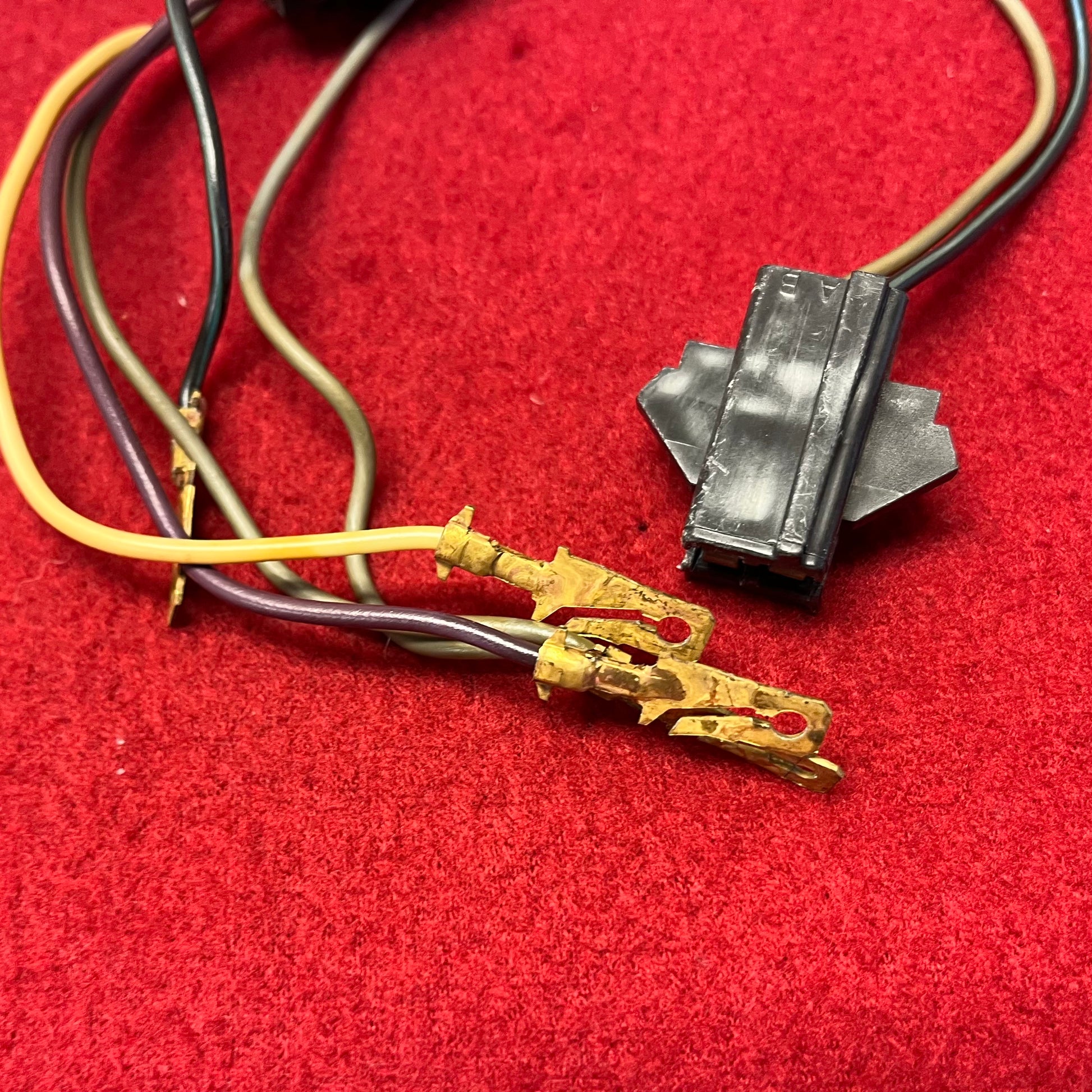 Wiper Motor Pigtail 1985-1988. This is a used section of wiring harness. Wires and connections have been inspected and seem to be in very usable condition. This is sold individually. These will come as pictured with bulkhead terminals attached. On the one connector, there is some rash on the connector itself that will not hinder its performance, but more of a cosmetic flaw. Flaw is pictured. 1978 - 1984 Pigtail is also available on the website